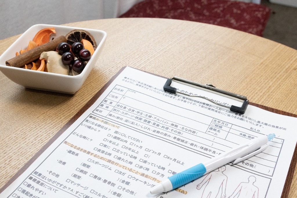 施術を行う前にカウンセリング表に記入をしていただきます。